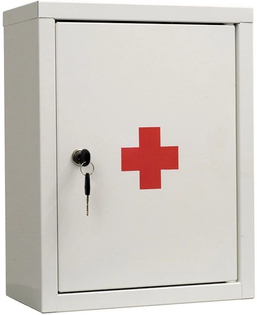 - Небольшой вес изделия достигается за счёт использования тонколистного металла в качестве основного материала. Благодаря этому аптечку можно разместить на полке шкафа или прикрепить к стене, используя имеющиеся в корпусе отверстия.